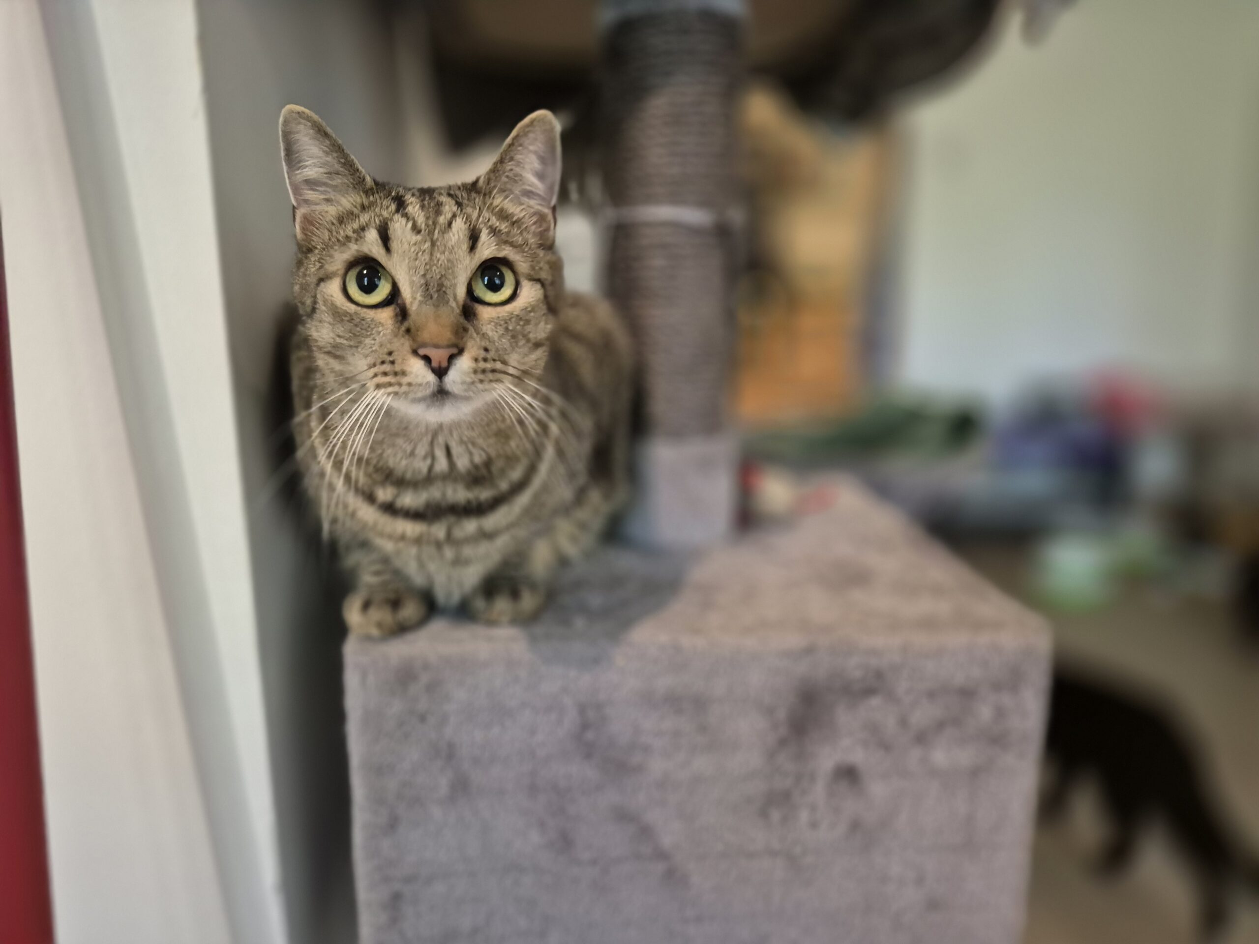 Poznajcie Maksia – burego przystojniaka o wyjątkowo uroczym pyszczku! Ten uroczy kot to prawdziwy dyplomata – balansuje między byciem niezależnym obserwatorem a potencjalnym miziakiem. Choć obecnie woli trzymać się nieco na uboczu, jego serce powoli otwiera się na ludzką przyjaźń.